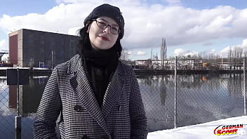 GERMAN SCOUT - Black Hair PAWG Glasses Girl Melli Venom Pick Up for First Casting Fuck in Berlin